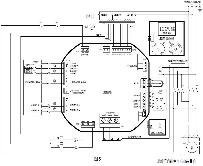 4.7.1.3 主控板:主控板安裝在機身內,內置微處理器,實現電動執行器智能控制。主控板主要功能包括:相序識別電路;控制電源處理;漏電檢測電路;模擬信號輸出控制;開關信號輸入檢測;與面板通信處理等。