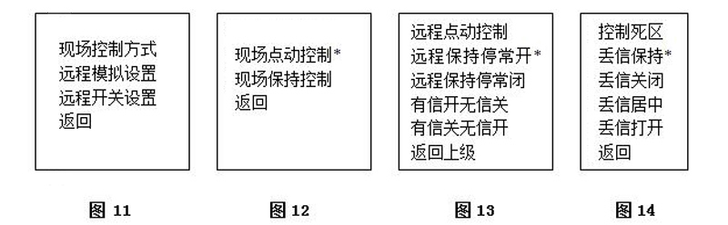 A) 現場控制方式如(圖 12):現場控制方式可選擇點動或自保持兩種模式如(圖 12)。通過操作旋鈕的打開操作,可移動光標位置。在光標停留選項上,通過操作旋鈕的關閉操作,確認選中該選項。被選中的選項,將被標注“*”