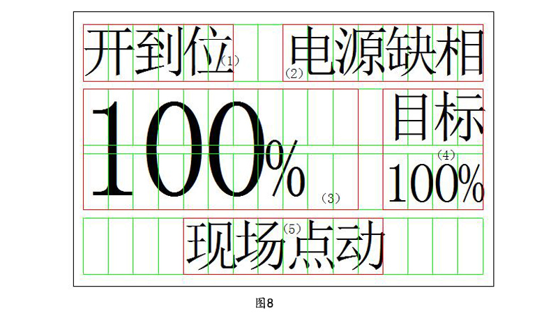 4.7.2.1.5目標位顯示:該位置設置2個16*16點陣+4個16*8點陣。分別顯示“目標”和遠程輸入開度百分比,在模擬控制丟信狀態顯示丟信;