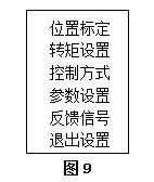 4.7.3.7控制方式設置如(圖9):使用操作旋鈕的打開操作,移動光標到“控制方式”項,使用操作旋鈕的關閉操作進入子菜單