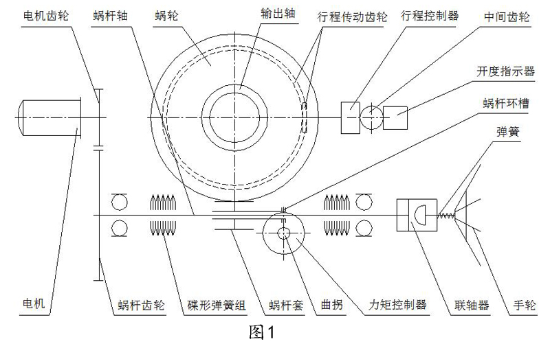 電動裝置由閥門專用電動機、減速機構、碟簧、轉矩檢測控制機構、行程檢測控制機構、控制器、面板操作、手電動切換機構、手動操作機構、開蓋機電連鎖裝置等組成。