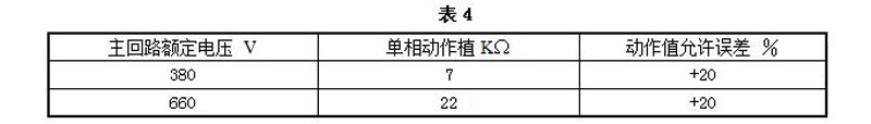 4.5.6漏電保護:當主電路對地絕緣值小于下表4時、實現漏電保護,當主電路對地絕緣當上升到下表值的1.5倍時,解除主電路漏電保護,電路恢復正常工作。