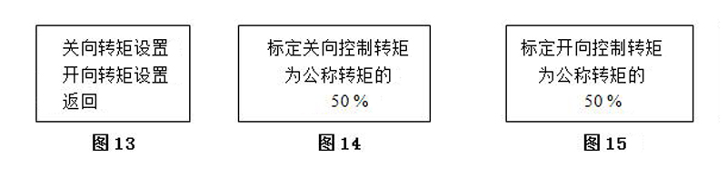 4.7.3.5關向轉矩設置如(圖13):進入關向轉矩設置,可設置關向控制轉矩大小。閥門關閉過程中,檢測到關向轉矩超過設定的控制轉矩時執行關向過矩保護。控制轉矩可調整范圍30%~120%在此界面下,旋轉操作扭增加、減少可在30%~120%之間調整數值如(圖14)。調整完成后,把光標移動到返回項按下設置確定鍵保存并返回上級界面。