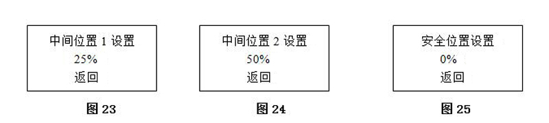4.7.3.14中間位1設置如(圖23):中間位置1用于閥門位置反饋用,可自由設定,默認25%