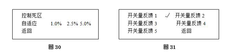 4.7.3.20 控制死區設置如(圖29):控制死區為調節型控制時響應輸入目標開度的死區范圍,可進入子菜單設置1.0%、2.5%、5.0%三個選項。
