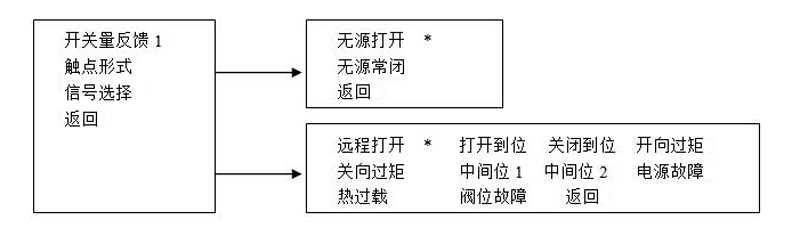 4.7.3.12關向控制設置如(圖21):該子菜單可設置關向限位形式選擇行程限位,由編碼器位置進行限位,當開度到0%時輸出關限位標志,禁止電動裝置關向操作;選擇轉矩限位,由轉矩電位器信號限位,當閥門關閉過程中檢測到當前轉矩大于設定的控制轉矩時,輸出關限位標志,禁止電動裝置關向操作。
